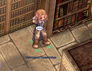 Head to the Juno Library (/navi yuno 338/203) and fine the Distressed Researcher (/navi yuno_in04 113/106), ask him if he needs help.